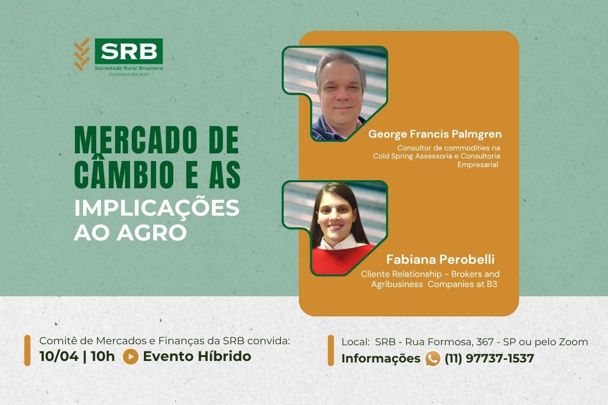O Comitê de Mercados e Finanças da Sociedade Rural Brasileira convida para um encontro estratégico sobre o cenário cambial e seus impactos no agro.